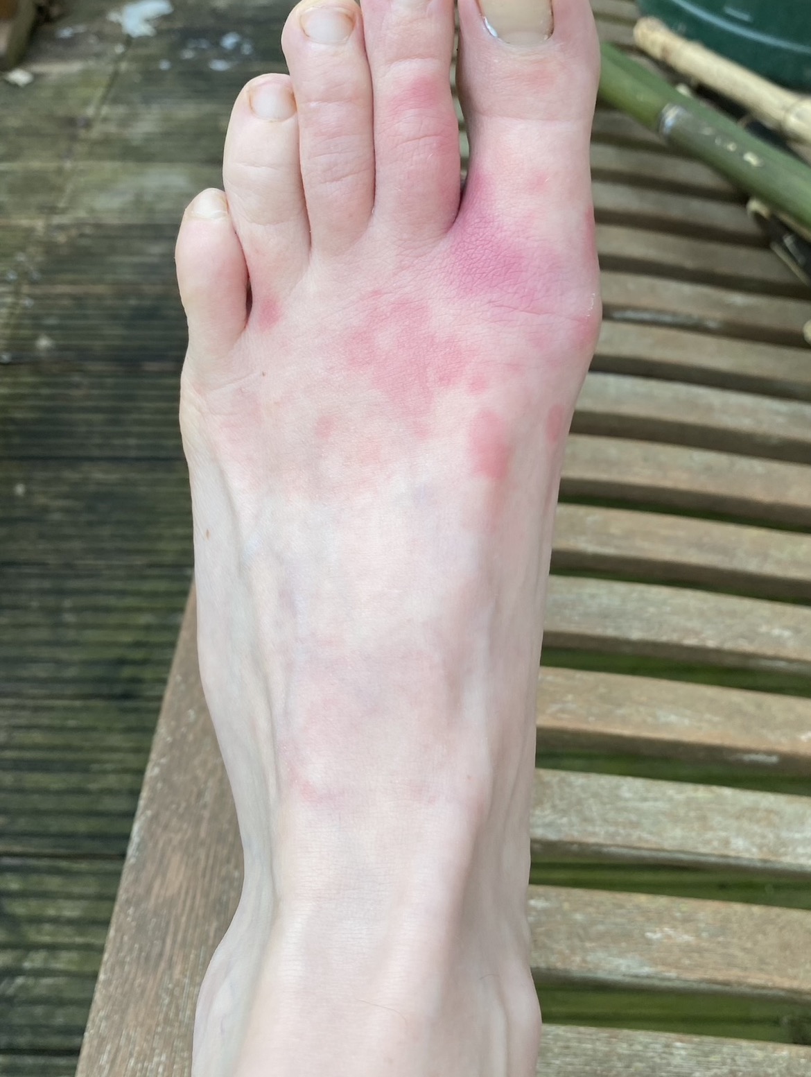 Severe itching between little toes after stepping on a slug.